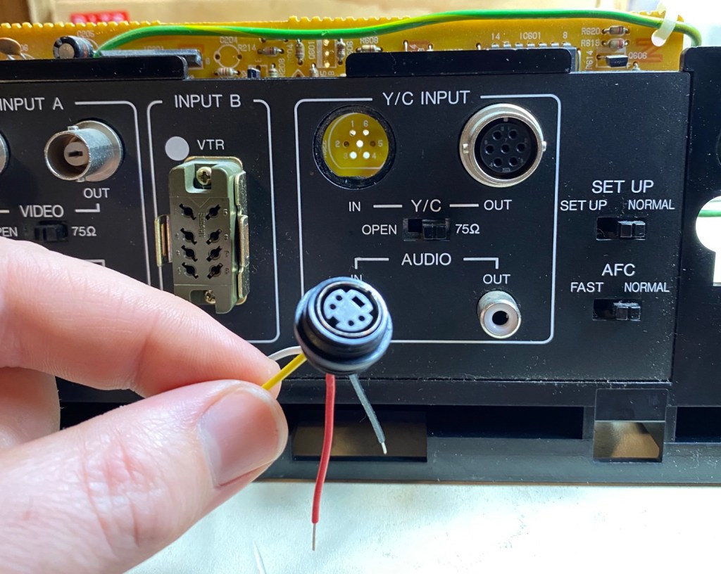 The soldering of the new S-Video connector can be done differently depending on the type of connector you use. If the S-Video connector you use has the exact same 7-pin layout as the original connector, then methods like the one mentioned in the following link is probably best. https://crtdatabase.com/crts/jvc/jvc-tm-1400su