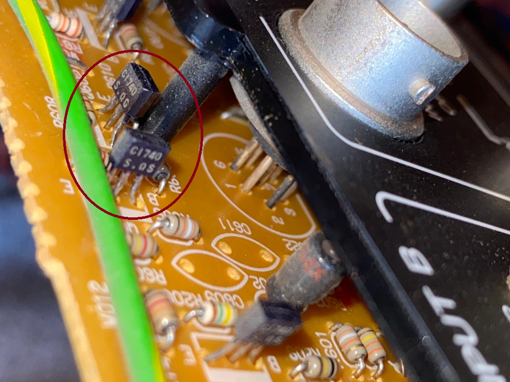 The next problem with this is that there are two transistors precariously close to the connector. One wrong move and you are back to Digi-Key looking for equivalent transistors to transistors selected in the 90s now laying pieces in your tears on your workbench.